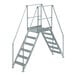 Access hard-to-reach spaces with this Vestil crossover ladder. With its 23 1/2" steps, this ladder provides ample foot room and plenty of space to extend your reach. The two-sided hand railing with mid-rails provides maximum stability to ensure user safety. Plus, the hand railings are removable for added convenience. The 36" long platform has 4" fixed toe boards on each side so objects won't roll off of it. Its ground legs feature rubber feet that allow for enhanced traction, preventing the ladder from slipping while in use. For optimal safety, this unit must be anchored to the floor using its floor mounting pads.