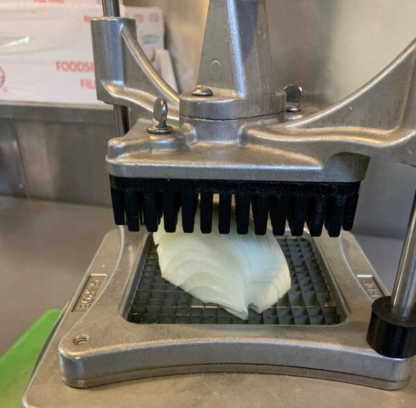 This Garde XL 181PBXL1412 1/2" and 1/4" push block easily swaps out with the one that came with your 1/2" or 1/4" vegetable dicer! Use this replacement so you can get back to dicing up onions, tomatoes, cucumbers, mushrooms, or potatoes for your establishment in no time. It also allows you to change any Garde XL dicer to a 1/2" or 1/4" cut when paired with the appropriate blade assembly.