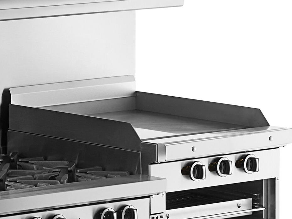 • 24" Raised griddle / broiler section with (3) 11,000 BTU burners