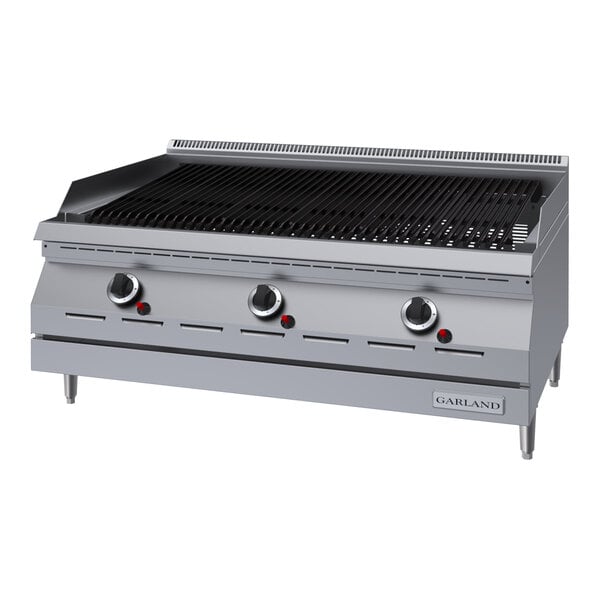 Fire up the barbeque with this Garland Designer series GD-36RBFF natural gas 36" countertop broiler with flame failure protection. It features an easy-to-clean stainless steel front that provides durability in eye-catching style, and with this built-in flame protection, the gas supply is automatically shut off when the pilot light goes out.