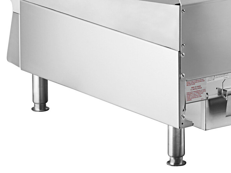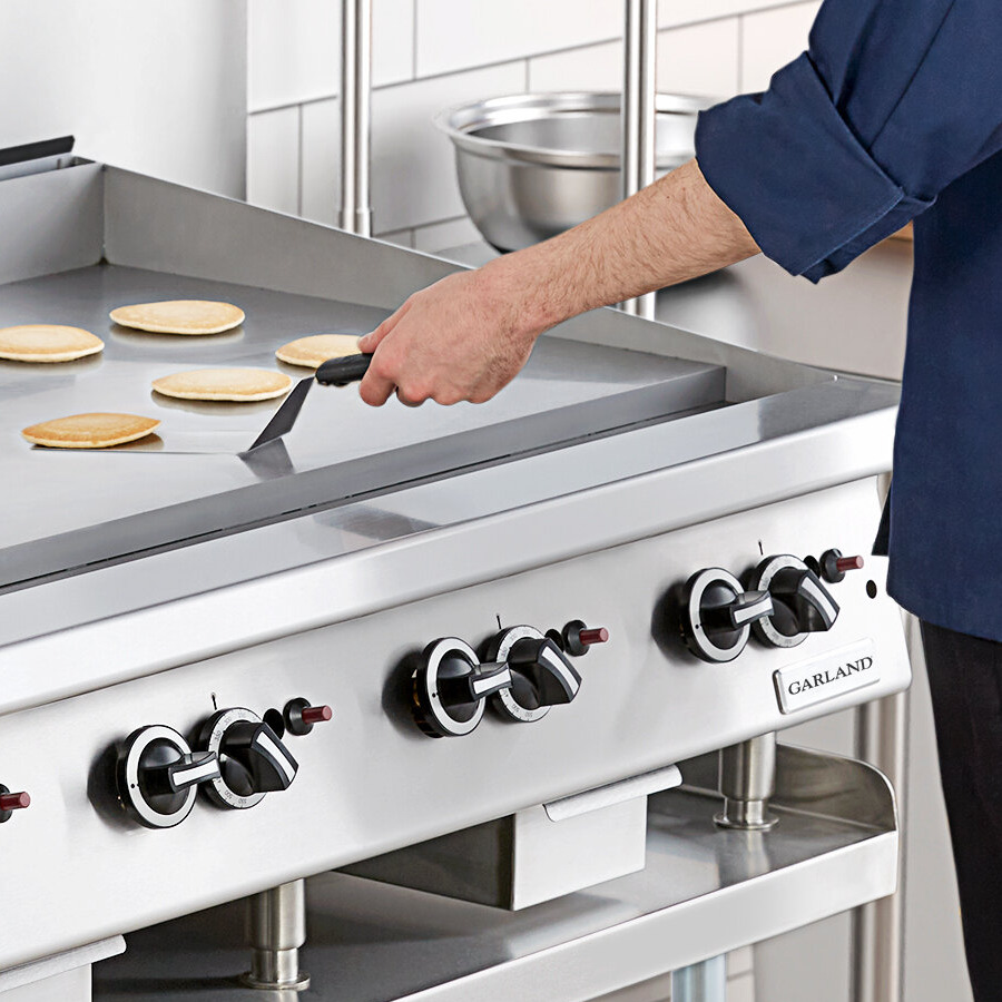 This heavy-duty gas griddle features four "U" shaped 28,000 BTU burners and a 1" thick steel griddle plate for even temperature distribution. Plus, its large capacity stainless steel grease tray and 3 1/2" deep front rail enhance usability.