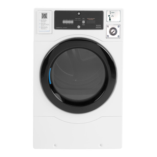 Bring innovation and efficiency to your laundry setup with this GE gas-powered commercial dryer. Featuring a 1/3 hp motor, a front-loading design, and a spacious 7.7 cu. ft. drum, this dryer is perfect for high-volume businesses. It allows you to choose from a built-in QR code payment system or coin operation using the included coin drop and universal coin box. The Launderday User App helps facilitate contactless payment while providing cycle notifications and machine availability status right at your fingertips. With SmartHQ Management, you can track vital data across all of your appliances on one centralized platform.