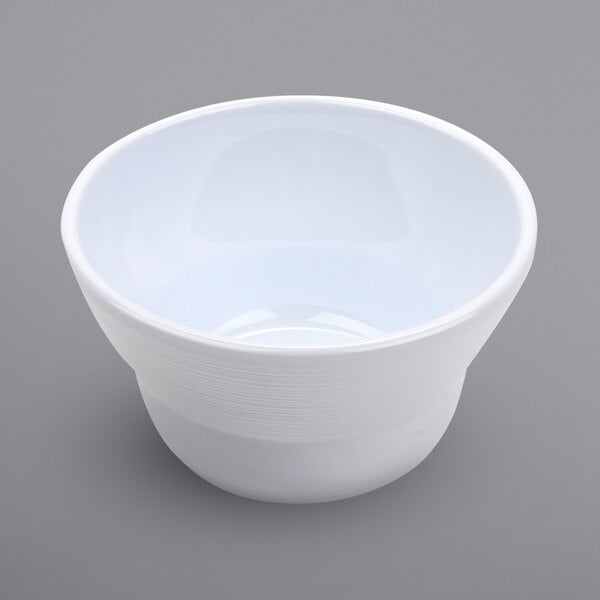 Bring a fresh look to your melamine servingware collection and brighten up any table setting with the white color of this GET B-14-MN-W Minski 16 oz. white glazed textured rim melamine bowl! Use it for serving signature salads, hearty bowls of soup, or fruit on the side. The crisp white coloring, geometric shape, and low profile textured rim style of the GET Minski collection lends a trendy, modern appeal to any decor. Made of heavyweight melamine, this product is ideal for most commercial settings, from quick service restaurants to cafes and hotel dining rooms. This break-resistant bowl is guaranteed to last while ensuring an upscale look to rival that of chinaware.