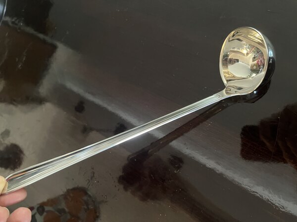 Really nice ladle, perfect size for catering sauces. On the smaller side for soup but would work, too big for dressings.