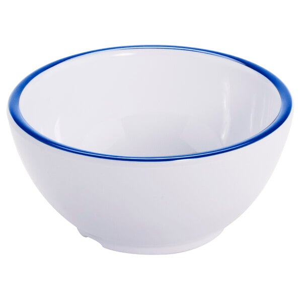 GET Settlement Bistro 14 oz. White Enamelware Melamine Round Bowl with Cobalt Blue Trim - Sample