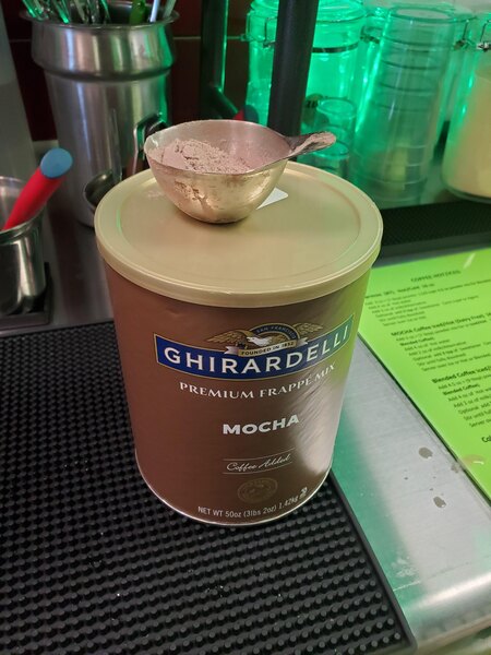 The Ghirardelli 3.12 lb. Mocha Frappe Mix is a great treat for those cold winter days. Our customers love this drink and its a great treat for the teens.