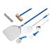 All of the top-of-the-line utensils you need for your pizza oven are in this GI Metal PRO32F Azzurra professional 7 piece pizza kit with 13" and 8" perforated pizza peels! The 13" square anodized aluminum perforated peel is lightweight, with an oval tubular handle that helps keep the peel steady during movement. The perforations help release flour before loading into the oven, helping reduce the chance of burnt crusts. Plus, the handle features a loop at the end for easy hanging and storage. The small 8" stainless steel perforated peel is the perfect size to turn pizzas in the oven, and the high density polymer handle and sliding grip helps you easily control the peel while in the oven.