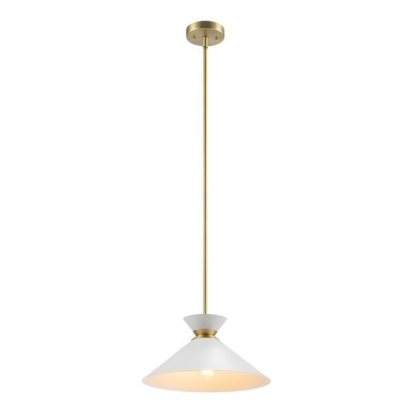 Add elevated ambiance to enhance your decor with this Globe Alex matte brass pendant light with a tapered white shade! This pendant light is made with durable metal, and it features a stylish, sophisticated matte brass finish 4 11/16" diameter canopy, a rod set, and a tapered white shade with a brass ring accent for a subtle twist on the classic pendant light. This item is compatible with Globe dimmer switches (sold separately) that add dimming capabilities to offer endless lighting options so you can create the perfect atmosphere. Designed to complement any aesthetic, this light adds ambiance and allure to any office, suite, workspace, or dining space in hospitality settings. Mounting hardware is included for easy installation.