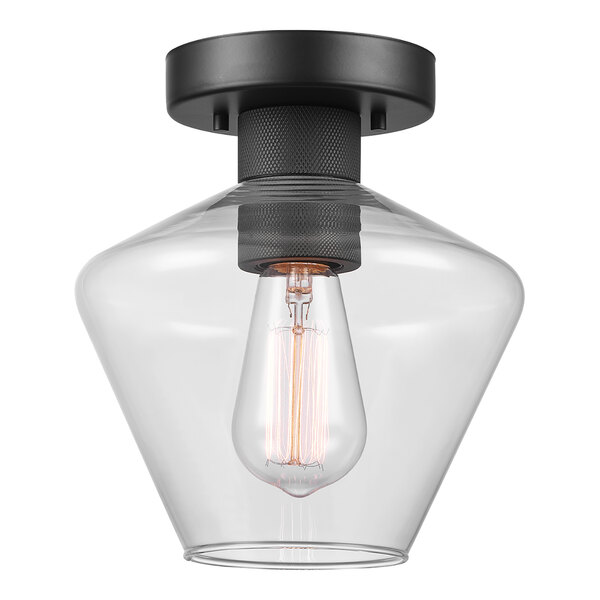 Use stylish, transitional light to enhance your decor with this Globe Harling matte black semi-flush mount ceiling light with a clear glass shade! This ceiling light is made with durable metal, and it features a traditional, sleek matte black finish, 4 3/4" diameter canopy with a diamond knurl-textured socket. It also features a hexagonal glass shade with a 3 15/16" opening for a subtle twist on the classic ceiling light. This item is compatible with Globe dimmer switches (sold separately) that add dimming capabilities to offer endless lighting options so you can create the perfect atmosphere. Designed to complement any aesthetic, this light adds a touch of mid-century modern design to offices, suites, workspaces, or dining spaces in hospitality settings. Mounting hardware is included for easy installation.