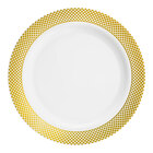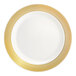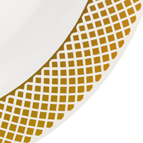 Featuring a contemporary gold lattice pattern along the wide outer rim, this plate's contrast between rim and body is sure to draw attention while adding an upscale look to your wedding receptions, banquets, or other catered events.