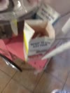 The red cherry cotton candy smells great spinning and comes packages in a sturdy paper carton. The carton is easy to open and close. It has a pour spout that makes dispensing the sugar easy.