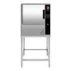 This unit is made of durable stainless steel with a mirror-polished interior cavity. It has removable non-louvered side panels for easy cleaning and maintenance and rear panel vents for reduced water / spray ingress. Its hands-free, field-reversible door features a continuous hinge and a one-piece, replaceable seal, and its latch provides a positive closure. The door also has a hidden switch to shut off the generator and compartment blower when it is opened, protecting your staff from hot steam when checking on or retrieving food. It also includes removable stainless steel support racks and a condensation collection tray for added efficiency. This model is easy to clean with a programmable delime feature that delimes its compartments at the push of a button.