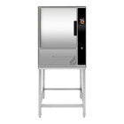 This unit is made of durable stainless steel with a mirror-polished interior cavity. It has removable non-louvered side panels for easy cleaning and maintenance and rear panel vents for reduced water / spray ingress. Its hands-free, field-reversible door features a continuous hinge and a one-piece, replaceable seal, and its latch provides a positive closure. The door also has a hidden switch to shut off the generator and compartment blower when it is opened, protecting your staff from hot steam when checking on or retrieving food. It also includes removable stainless steel support racks and a condensation collection tray for added efficiency. This model is easy to clean with a programmable delime feature that delimes its compartments at the push of a button.