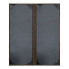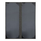 As a part of this Milan collection, this menu cover boasts an elegant design, adding a touch of sophistication in any setting. Featuring a strong construction, this menu cover offers a superior alternative to ordinary plastic menu covers. Inside, the menu cover has a black interior to create a contrast and make your menu pop. This cover's interior provides 2 panels for displaying your menu. Black album style corners keep each insert in place while also protecting your paper from bending or tearing from heavy use. Allow for a 1/2" border on your menu sheet for optimal display results. For a quality menu cover you can depend on, look no further than this H. Risch, Inc. Milan menu cover!
