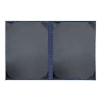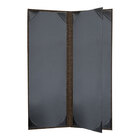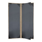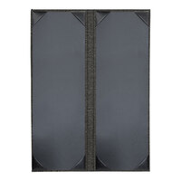 As a part of this Milan collection, this menu cover boasts an elegant design, adding a touch of sophistication in any setting. Featuring a strong construction, this menu cover offers a superior alternative to ordinary plastic menu covers. Inside, the menu cover has a black interior to create a contrast and make your menu pop. This cover's booklet design provides 4 panels inside for displaying your menu. Black album style corners keep each insert in place while also protecting your paper from bending or tearing from heavy use. Allow for a 1/2" border on your menu sheet for optimal display results. For a quality menu cover you can depend on, look no further than this H. Risch, Inc. Milan menu cover!