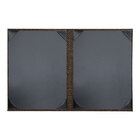 As a part of this Milan collection, this menu cover boasts an elegant design, adding a touch of sophistication in any setting. Featuring a strong construction, this menu cover offers a superior alternative to ordinary plastic menu covers. Inside, the menu cover has a black interior to create a contrast and make your menu pop. This cover's interior provides 2 panels for displaying your menu. Black album style corners keep each insert in place while also protecting your paper from bending or tearing from heavy use. Allow for a 1/2" border on your menu sheet for optimal display results. For a quality menu cover you can depend on, look no further than this H. Risch, Inc. Milan menu cover!