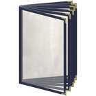 Present your menu offerings in style with this H. Risch, Inc. TE-12V Deluxe Sewn 5 1/2" x 8 1/2" maroon 12 view vinyl menu cover with gold decorative corners and gloss finish! With a colorful leatherette trim, this menu cover promotes a professional appearance in any setting. Its six pockets accommodate twelve 5 1/2" x 8 1/2" inserts, making it perfect for presenting your signature dishes, happy hour specials, wine lists, or dessert menus. Plus, if your menu changes frequently, the inserts can be removed and replaced within seconds.