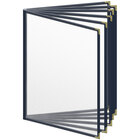 Present your menu offerings in style with this H. Risch, Inc. TE-12V Deluxe Sewn 8 1/2" x 11" green 12 view vinyl menu cover with gold decorative corners and matte finish! With a colorful leatherette trim, this menu cover promotes a professional appearance in any setting. Its six pockets accommodate twelve 8 1/2" x 11" inserts, making it perfect for presenting your signature dishes, happy hour specials, wine lists, or dessert menus. Plus, if your menu changes frequently, the inserts can be removed and replaced within seconds.
