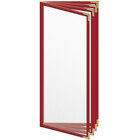 H. Risch, Inc. TEDD Deluxe Sewn 4 1/4" x 11" Blue 8 View Menu Cover with Gold Smooth Corners and Matte Finish
