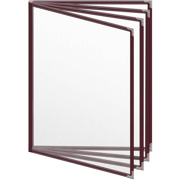 H. Risch, Inc. TEDD Deluxe Sewn 8 1/2" x 11" Maroon 8 View Menu Cover with Silver Decorative Corners and Matte Finish