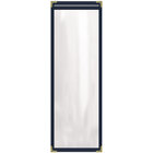 This menu cover boasts a red double stitched leatherette edge for long-lasting use. Its standard decorative gold metal corners also add a dignified and polished touch. Additionally, it is easy to wipe down at the end of the day, allowing you to give every guest the best possible dining experience. The clear, glossy design of the view panes helps promote excellent visibility, ensuring that customers will be able to easily read your options. Use this menu cover to present your offerings in a refined and organized way!