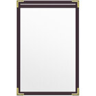 This menu cover boasts a red double stitched edge for long-lasting use. Its standard smooth gold metal corners also add a dignified and polished touch. Additionally, it is easy to wipe down at the end of the day, allowing you to give every guest the best possible dining experience. The clear, matte design of the view panes hides scratches and helps promote excellent visibility, ensuring that customers will be able to easily read your options. Use this menu cover to present your offerings in a refined and organized way!
