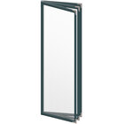 Present your menu offerings in style with this H. Risch, Inc. TETB Deluxe Sewn 4 1/4" x 14" blue 6 view vinyl menu cover. With a colorful leatherette trim, this menu cover promotes a professional appearance in any setting. Its three pockets accommodate (6) 4 1/4" x 14" inserts, making it perfect for presenting your signature dishes, happy hour specials, wine lists, or dessert menus. Plus, if your menu changes frequently, the inserts can be removed and replaced within seconds.