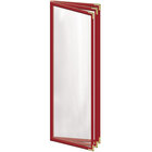 Present your menu offerings in style with this H. Risch, Inc. TETB Deluxe Sewn 4 1/4" x 14" brown 6 view vinyl menu cover. With a colorful leatherette trim, this menu cover promotes a professional appearance in any setting. Its three pockets accommodate (6) 4 1/4" x 14" inserts, making it perfect for presenting your signature dishes, happy hour specials, wine lists, or dessert menus. Plus, if your menu changes frequently, the inserts can be removed and replaced within seconds.