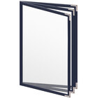 Present your menu offerings in style with this H. Risch, Inc. TETB Deluxe Sewn 5 1/2" x 8 1/2" black 6 view vinyl menu cover. With a colorful leatherette trim, this menu cover promotes a professional appearance in any setting. Its three pockets accommodate (6) 5 1/2" x 8 1/2" inserts, making it perfect for presenting your signature dishes, happy hour specials, wine lists, or dessert menus. Plus, if your menu changes frequently, the inserts can be removed and replaced within seconds.