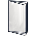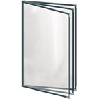 This menu cover boasts a brown double stitched leatherette edge for long-lasting use. Its silver smooth metal corners also add a dignified and polished touch. Additionally, it is easy to wipe down at the end of the day, allowing you to give every guest the best possible dining experience. The clear, glossy design of the view panes helps promote excellent visibility, ensuring that customers will be able to easily read your options. Use this menu cover to present your offerings in a refined and organized way!