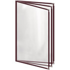 Present your menu offerings in style with this H. Risch, Inc. TETB Deluxe Sewn 8 1/2" x 14" brown 6 view vinyl menu cover. With a colorful leatherette trim, this menu cover promotes a professional appearance in any setting. Its three pockets accommodate (6) 8 1/2" x 14" inserts, making it perfect for presenting your signature dishes, happy hour specials, wine lists, or dessert menus. Plus, if your menu changes frequently, the inserts can be removed and replaced within seconds.