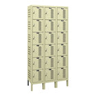 Provide secure storage for personal belongings with this Hallowell 36" x 12" x 78" tan triple 6-tier ventilated locker - assembled U3228-6HV-A-PT. Boasting a sturdy sheet steel construction and a neutral tan finish, this locker unit is durable enough to withstand extensive use in warehouses, offices, schools, and industrial spaces. Every part is meticulously powder coated, sealed, and welded to provide an exceptionally durable interior and exterior. It includes a total of 18 compartments with ventilated sides, each containing one hat shelf to allow the user to store belongings with ease. Additionally, the unit features 6" feet that elevate the unit off the ground, protecting the contents from dirt and potential harmful cleaning chemicals.