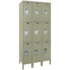 Hallowell Gray 36" x 12" x 78" Triple, 3 Tier Locker with Recessed Handle - Unassembled U3228-3HG
