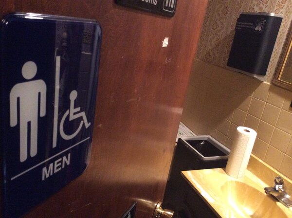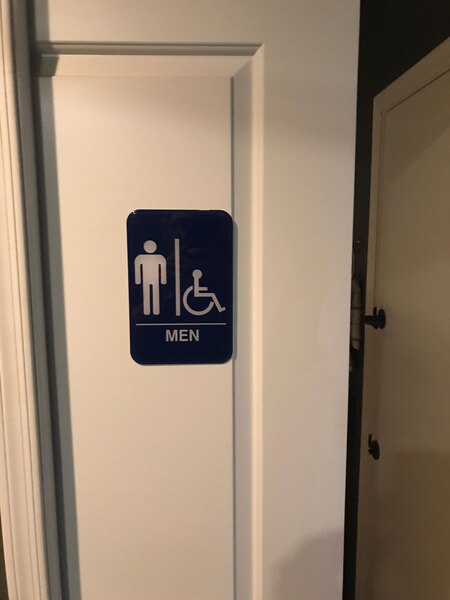 Need to mark a Men's restroom that is also handicap accessible? This blue and white sign will do the job and save you money. The signs are very easy to read. It features a large graphic and comes with a a self-adhesive backing to make for easy install.