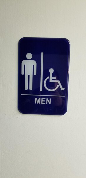 This nine inch by three inch blue and white handicap accessible men’s restroom sign has worked very well. The blue background is bright and the pictures can be seen from a distance. I would order again in the future. I also hope to see bulk purchasing options available in the future.