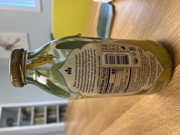 Brewed with 4 decades of tea-making experience, this Harney & Sons citrus and ginkgo iced tea delivers the taste of quality in every sip! Made with a classic selection of delicate, grassy green tea leaves, organic cane sugar and honey, ginkgo biloba leaves, and organic lemongrass, this pre-brewed iced tea is a deliciously refreshing pick-me-up with a kick of caffeine. Harney & Sons expertly hand-selects their tea blends and brews in small batches for great flavor every time! Because this tea is less processed and made with real ingredients, some settling may occur in the bottle. Simply give it a shake before serving to make sure all the good stuff is mixed in! Serve this tea chilled for a refreshing, thirst-quenching beverage option that's perfect for summer.