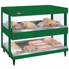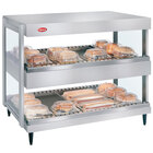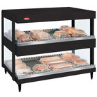 Showcase delicious wrapped food like breakfast sandwiches, hamburgers, pizza, nachos, and more with the Hatco GRSDH-24D antique copper Glo-Ray horizontal double shelf merchandiser. The unit's sleek aluminum and tempered glass construction makes a great focal point on any countertop to encourage impulse and point of purchase sales, and customers are able to easily serve themselves thanks to the open front.