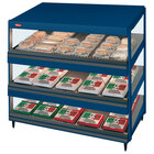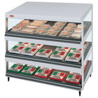 Showcase delicious wrapped food like breakfast sandwiches, hamburgers, pizza, nachos, and more with the Hatco GRSDS-36T hunter green Glo-Ray 36" slanted triple shelf merchandiser. The unit's sleek aluminum and tempered glass construction makes a great focal point on any countertop to encourage impulse and point of purchase sales, and customers are able to easily serve themselves thanks to the open front.
