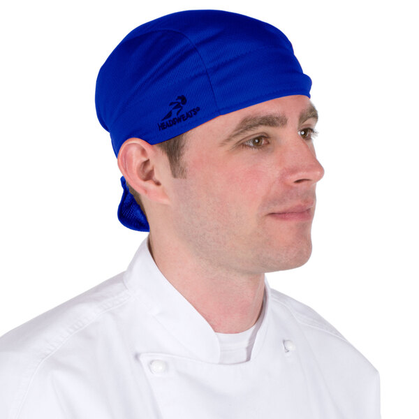This Headsweats royal blue shorty chef cap will keep your employees cool when the kitchen gets sweltering hot, whether it's during the heat of summer or throughout your peak period of business. Busy chefs and cooks will love the absorbency, especially in a hot kitchen setting. Made with performance fabric, this one-size-fits-most chef cap will be a great choice for covering your staff's hair and ensuring sanitary conditions in your food service establishment.