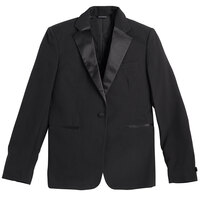 The single breasted design and closed rear vent of this jacket make it easy for your staff to maintain that desired sharp, clean look. The jacket also has 1 welt chest pocket, 2 side flap pockets, and 2 deep inside breast pockets that are perfect for keeping bottle openers and other items handy. Pair this tuxedo jacket with a Henry Segal shirt and bow tie (sold separately) to create a professional, uniform look for your wait staff. This black polyester jacket is a men's size 36.