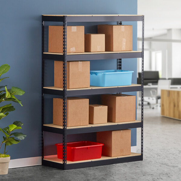 Hirsh Industries 17313 48" x 18" x 72" Black Heavy-Duty Five-Shelf Boltless Shelving Unit with Particleboard Decking