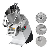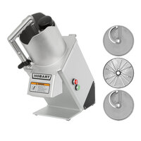 The Hobart FP350-1A continuous feed food processor comes complete with everything you need to quickly slice or shred fresh vegetables, fruits, and even cheese. It includes (1) 1/16" slicer plate, (1) 5/32" slicer plate, and (1) 3/16" shredder plate. Each unit is designed with a 45 degree angled front for operator convenience and rapid product loading. A large, full size feed hopper supports processing capabilities for a wide variety of products, while permitting continuous cutting of long products.
