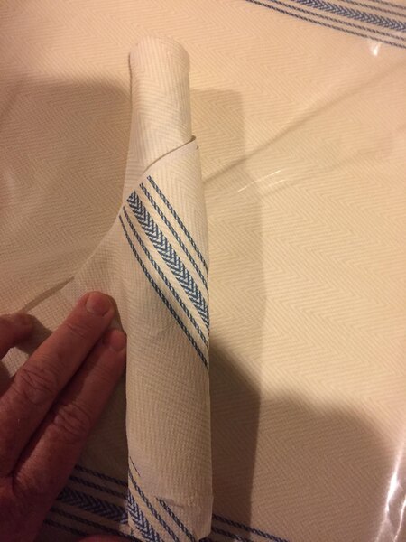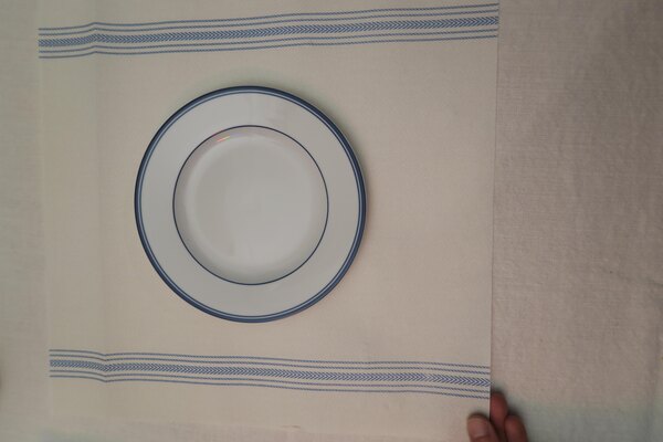 The Hoffmaster FP1313 FashnPoint 15 1/2" x 15 1/2" White/Blue Linen-Feel Flat Pack Ultra-Ply Dishtowel Print Napkin is a high quality dinner napkin suitable for nice casual events and settings. The flat pack makes it easy to fold or roll these over silverware.