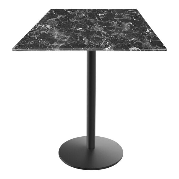 Holland Bar Stool EuroSlim 32" x 32" Black Faux Marble Indoor / Outdoor Counter Height Table with Round Base