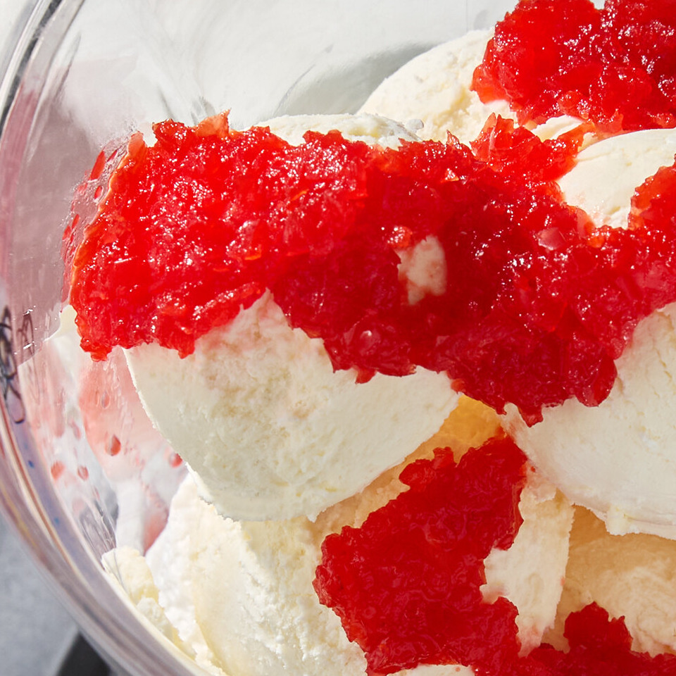 - Bold, red-colored crushed cherries with a classic maraschino flavor