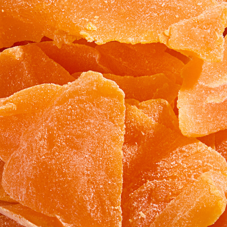 - Plump, dried mango with a soft, chewy texture