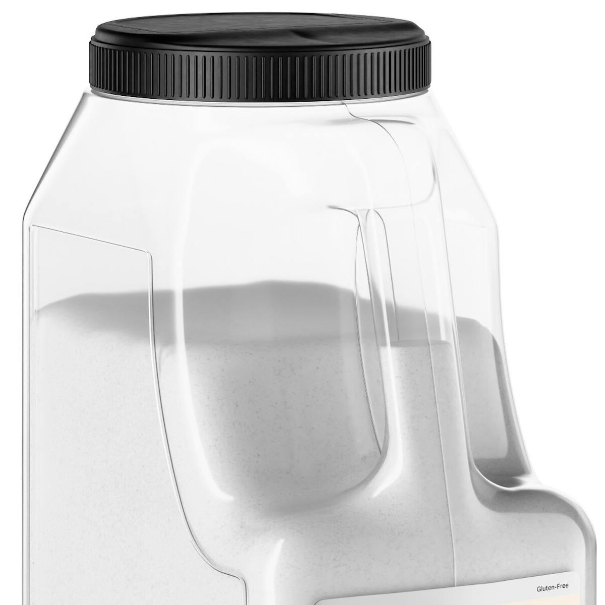 - Each container features a black flapper lid for pouring or measuring without taking the lid off