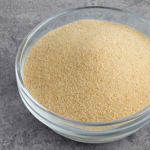 Granulated garlic is made from dried, ground garlic cloves, and this variety features a granulated texture. It delivers a bold garlic flavor with slightly sweet taste that pairs well with a wide range of ingredients, making it a versatile addition to any commercial kitchen. This garlic comes in a granulated form that is less likely to clump than garlic powder, making it perfect for use in recipes. Use it as a dry rub to add deep flavor to pork and beef or use it in favorite Italian dishes like garlic bread or pasta sauce.