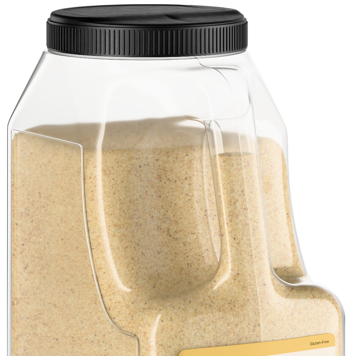 This large 7 lb. container of granulated garlic is perfect for restaurants, bars, catering services, and other commercial kitchens. Plus, it features a black flapper lid that makes it easy to pour or measure the spice by the spoonful without having to take the entire lid off the container. Keeping this granulated garlic on hand will help you create delicious dishes that your customers are sure to rave about!