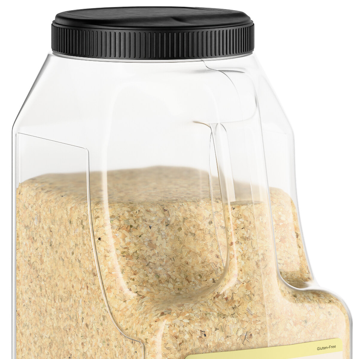 This large 4 lb. container is perfect for restaurants, bars, catering services, and other commercial kitchens. Plus, it features a black flapper lid that makes it easy to pour or measure the spice by the spoonful without having to take the entire lid off the container. Keeping this minced onion on hand will help you create delicious dishes that your customers are sure to rave about!